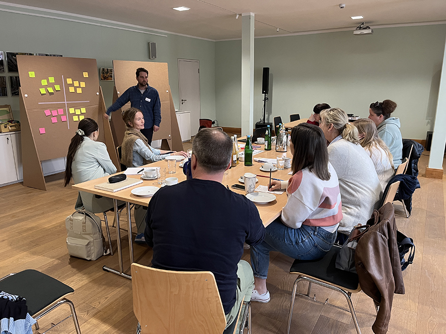 In der Planungswerkstatt sammelten die Teilnehmenden zunächst gemeinsam Bedürfnisse, Wünsche und Ideen für den neuen Standort. Daran schloss sich die Vorstellung und Diskussion von Beispielprojekten zum Thema Schulbau an, um Impulse für die eigene Planung zu erhalten. Die Expertin für Schulbau und partizipative Architektur, Marlen Kärcher, stellte ausgewählte Schulbauprojekte vor und betonte den engen Zusammenhang zwischen der Raumgestaltung und organisatorische Aufteilung und dem Schulkonzept.